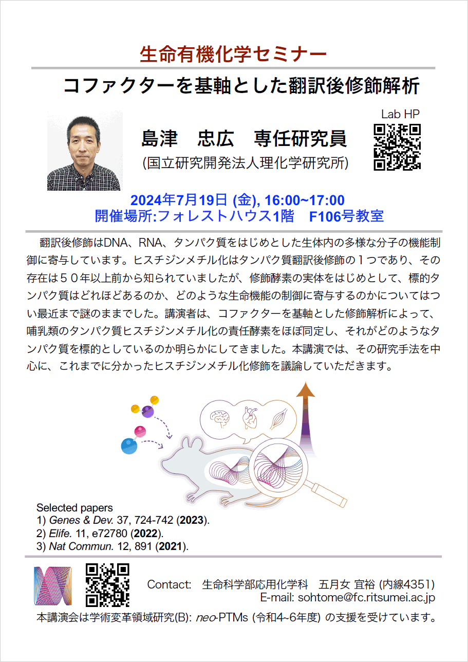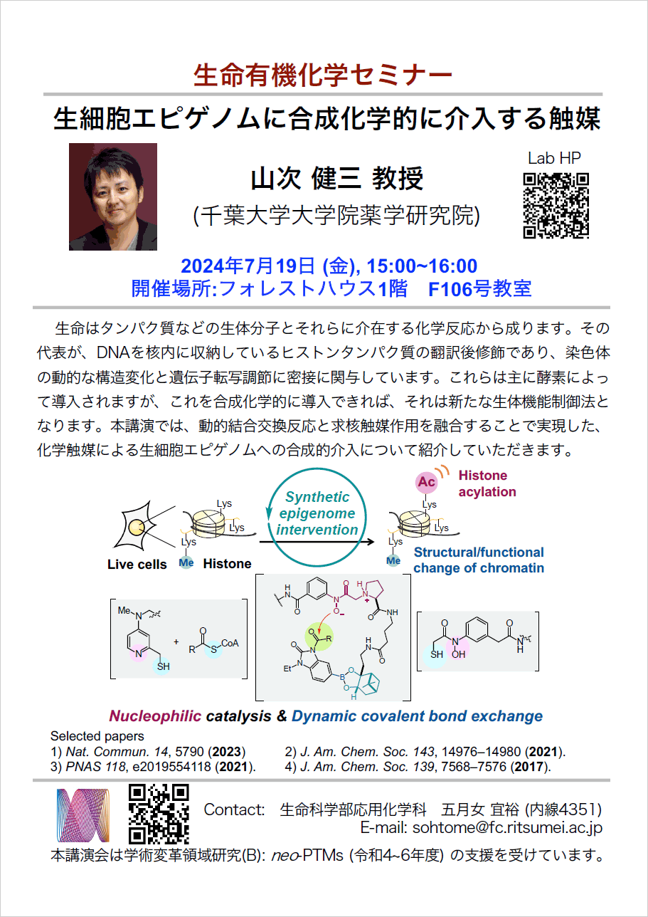 山次健三先生 (千葉大院薬)、島津忠広先生 (理研CPR) の講演会を開催しました。ご参加いただき有り難うございました。